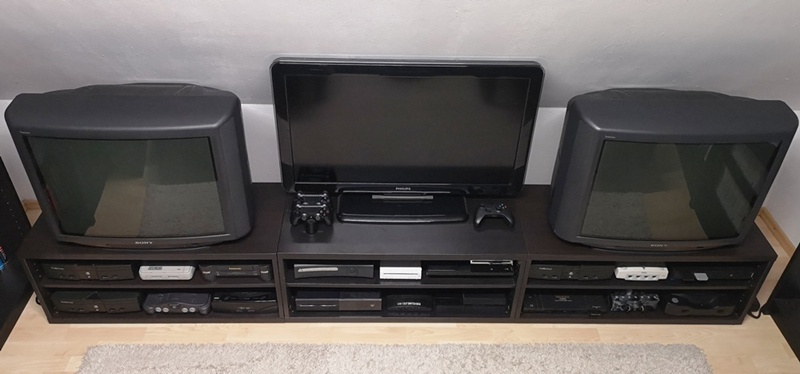Platz habe ich genug, aber größere Dinge über eine Wendeltreppe in die Wohnung zu bringen ist so eine Sache. Davon ab käme mir nicht irgendeine Röhre ins Haus. Hätte am liebsten wieder meine alte HD-Röhre von Philips mit 80 cm Diagonale, da läuft alles drauf.