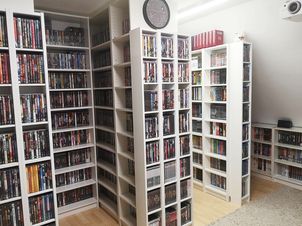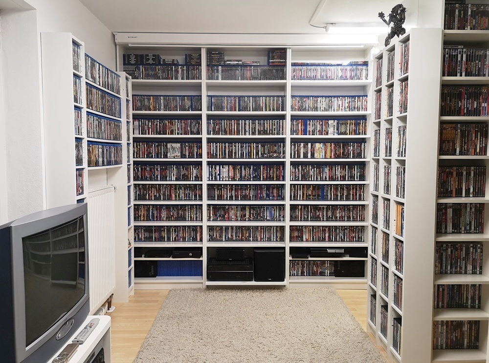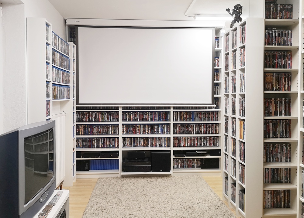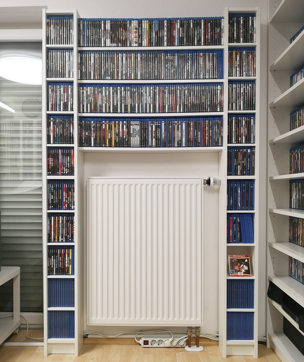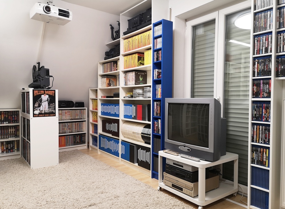 Aktuelle Bilder aus meinem "Kino" (das blaue Regal ist übrigens Absicht, da ich mir oft anhören durfte der Raum sei zu farblos möbliert):  :lol: