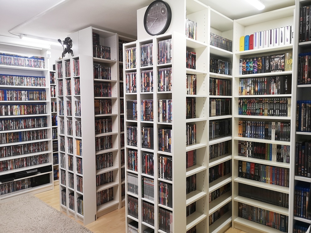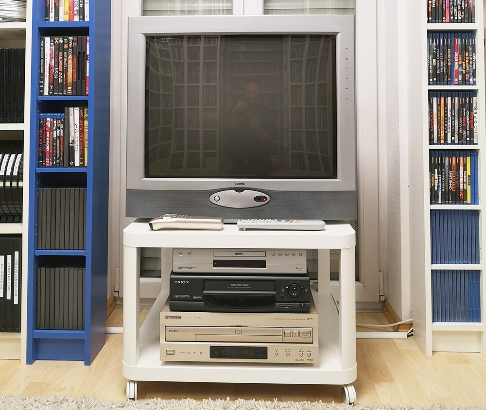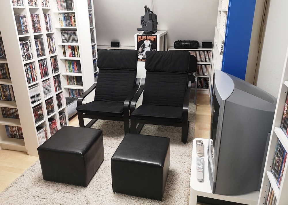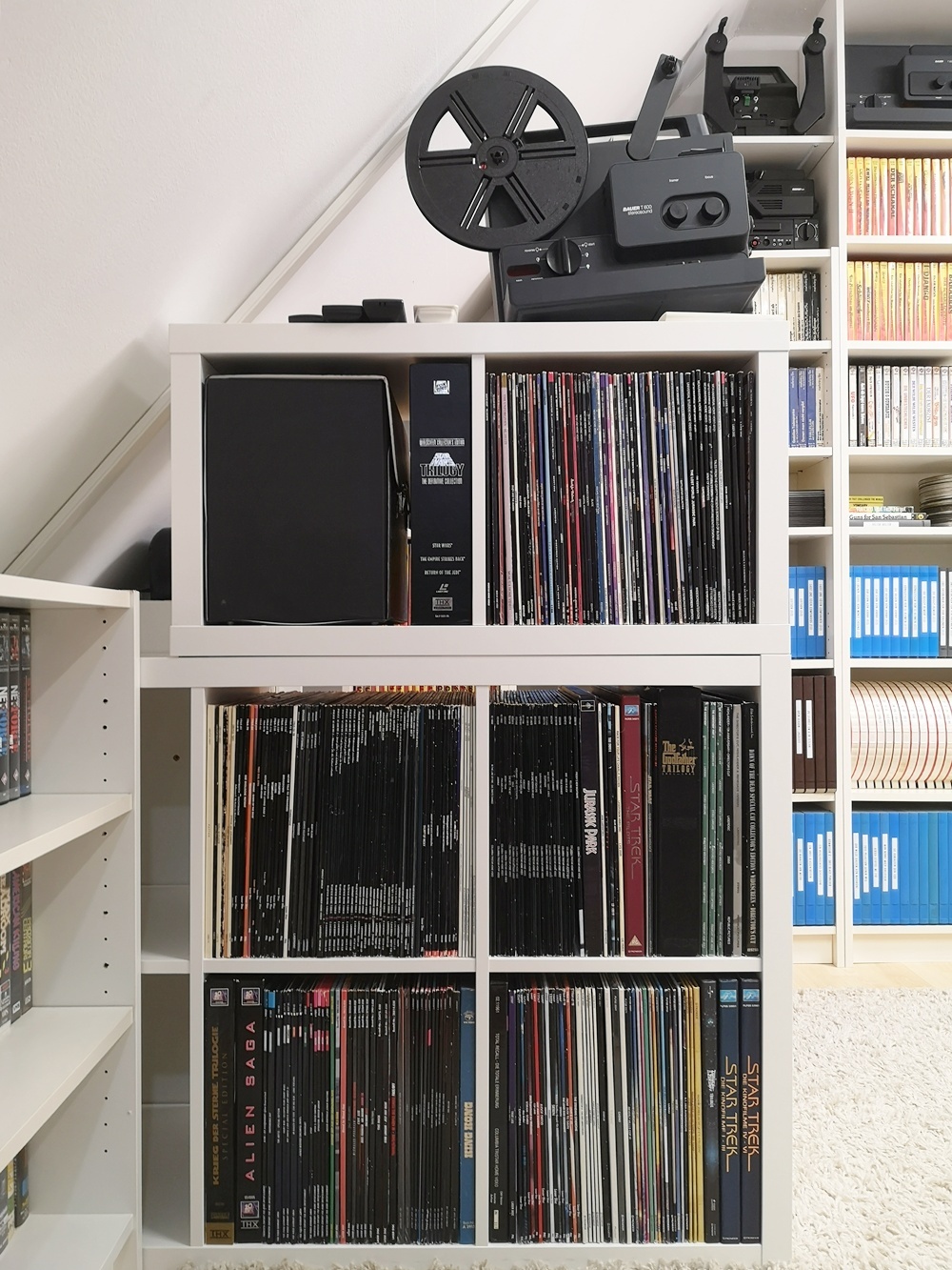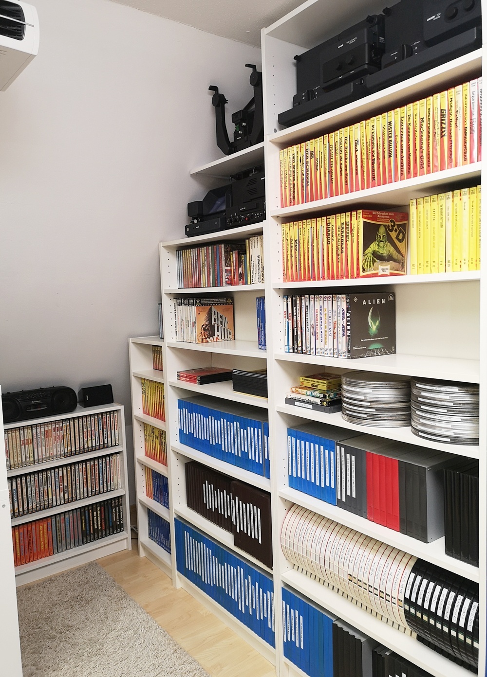 Aktuelle Bilder aus meinem "Kino" (das blaue Regal ist übrigens Absicht, da ich mir oft anhören durfte der Raum sei zu farblos möbliert):  :lol: